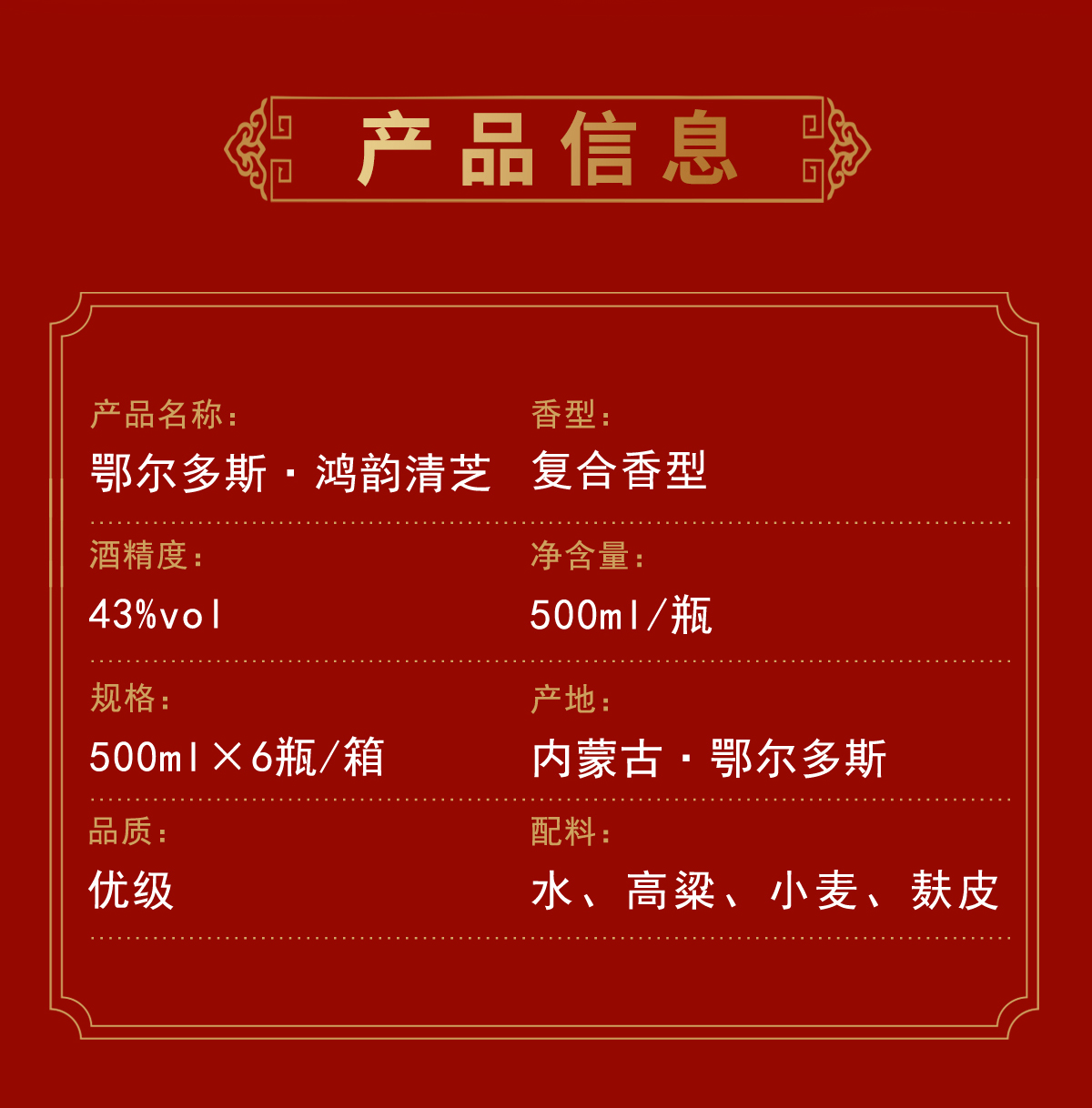 鄂尔多斯 43°鸿韵清芝 500ml*6