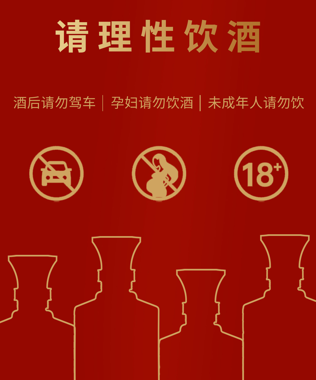 饮酒危害健康,合理饮酒,切勿过量;未成年人请勿购买酒类商品;孕妇、哺乳期妇女请勿饮酒;酒后请勿驾车。