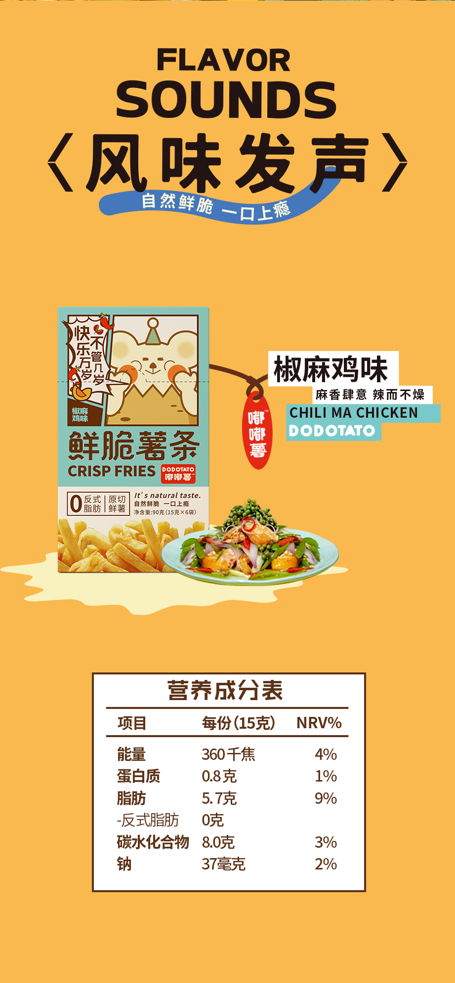 嘟嘟薯 鲜脆薯条(椒麻鸡味) 90g*3盒